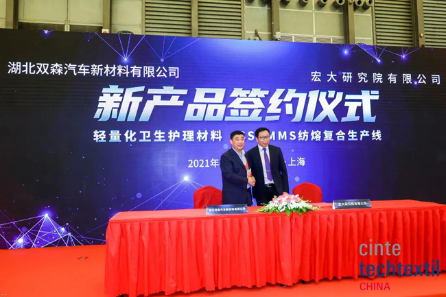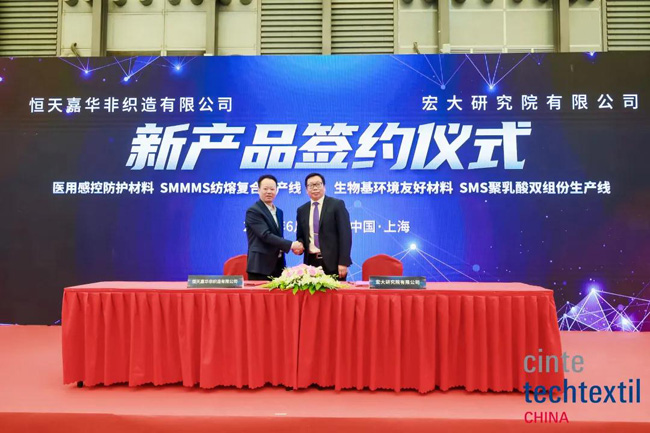 恒天嘉华非织造有限公司与宏大研究院有限公司签订“医用感控防护材料SMMMS纺熔复合生产线”“生物基环境友好材料SMS聚乳酸双组分生产线”两项目合同。